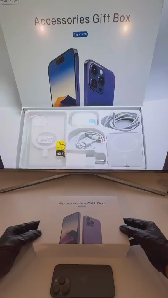 Un kit élégant qui réunit tous les essentiels pour une expérience complète. Profitez d’une coque MagSafe, d’une ultra-smartwatch, d’AirPods, d’un chargeur MagSafe et d’un câble Lightning – le tout soigneusement intégré dans un écrin raffiné, spécialement conçu pour sublimer votre quotidien connecté.